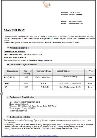 Sample Cv For Mba Freshers In Hr - Resume : Resume Designs ...