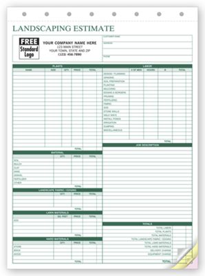 Landscape Bid - Landscaping Estimate Form - 6571 by Deluxe